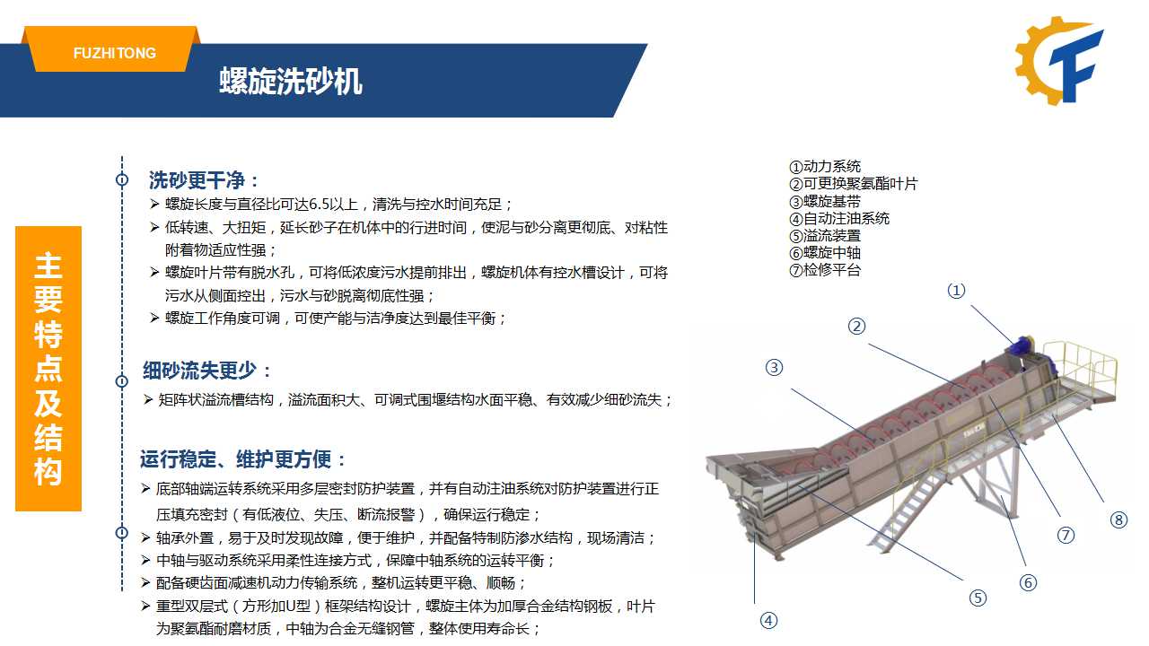 產(chǎn)品介紹:螺旋洗砂機(jī)是洗砂機(jī)的一種,主要通過(guò)設(shè)備內(nèi)的螺旋裝置對(duì)砂子進(jìn)行攪拌,從而使砂子中的泥土與水進(jìn)行充分混合,利用水的浮力作用將泥土和其它輕質(zhì)物料從砂子中分離出來(lái)
