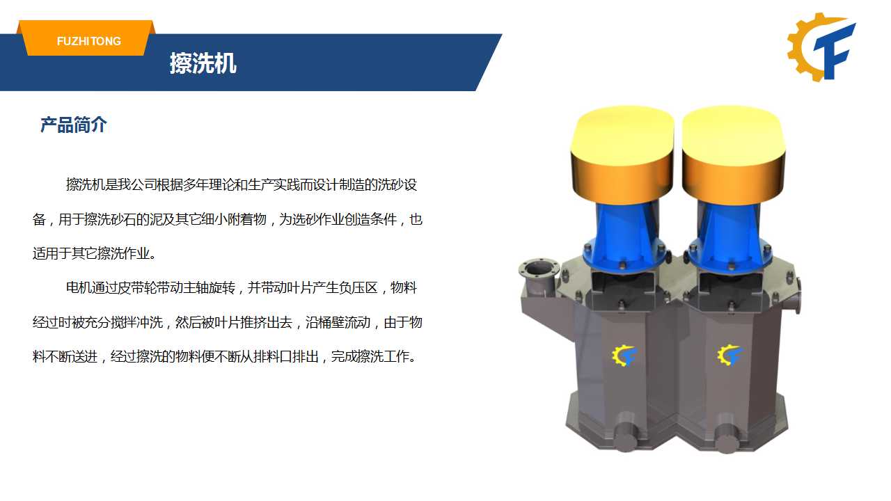 產(chǎn)品簡(jiǎn)介擦洗機(jī)是我公司根據(jù)多年理論和生產(chǎn)實(shí)踐而設(shè)計(jì)制造的洗砂設(shè)備,用于擦洗砂石的泥及其它細(xì)小附著物,為選砂作業(yè)創(chuàng)造條件,也適用于其
